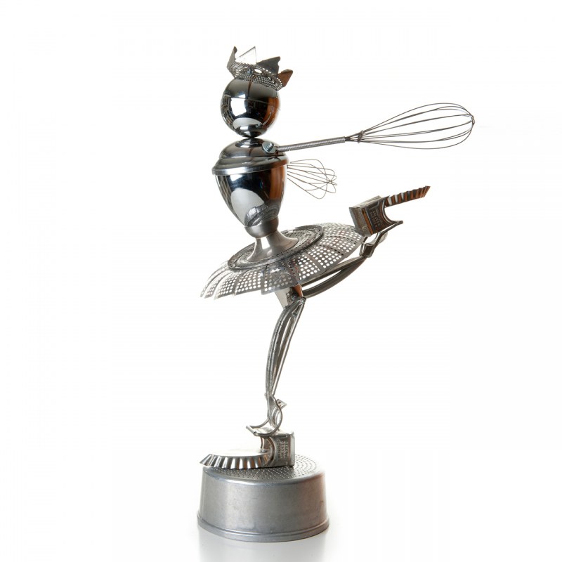 Composée d’ustensiles de cuisine et d’un fer à repasser.